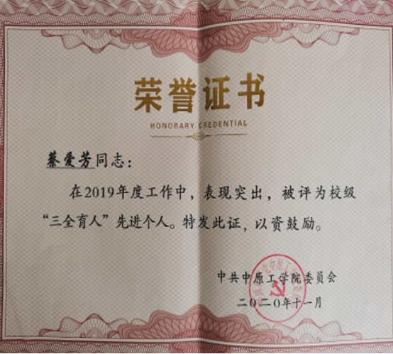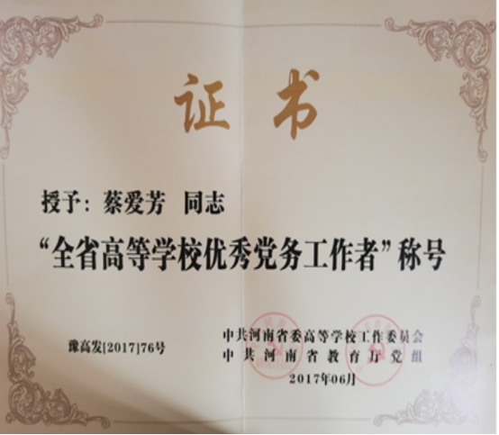 “课题组教师获其他奖励和荣誉情况:获得河南省优秀党务工作者1人、mk官网三育人先进个人1人、mk官网文明教师1人、mk官网优秀党务工作者1人”。
