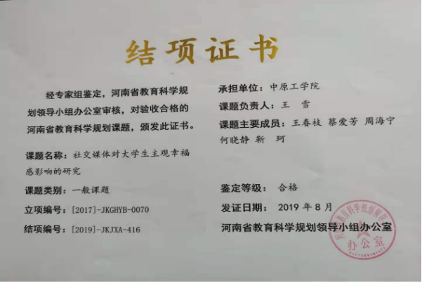 2.河南省哲学社会科学规划项目结项证书