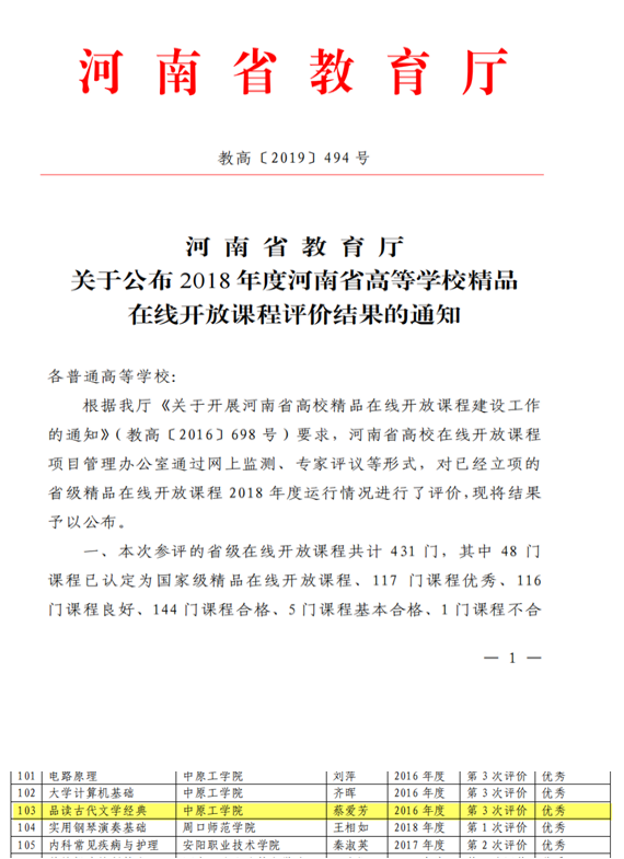 4.省级教学质量工程项目(河南省精品在线开放课程评价优秀认定文件)