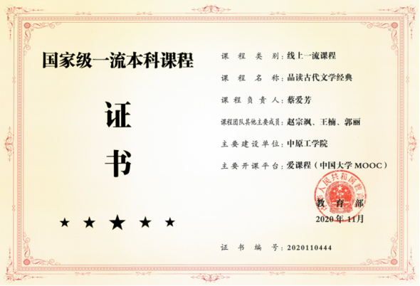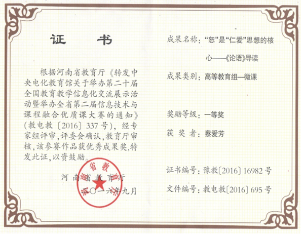 8.省级教学成果奖(“大学语文”获河南省本科教育线上教学优秀课程一等奖)